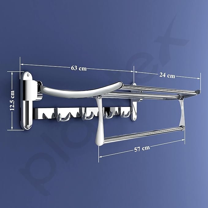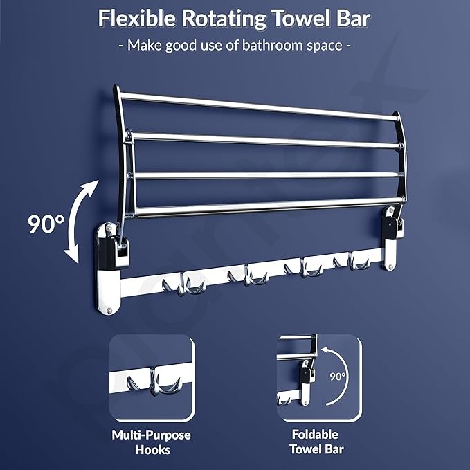 Upgrade your bathroom with this Stainless Steel Folding Towel Rack. Built with rust-proof, high-quality steel, it delivers strength, durability, and long-lasting shine. The foldable 24-inch design saves space while giving you a sturdy rack for towels and extra hooks for clothes or accessories. Perfect for bathrooms, washrooms, hotels, and modern homes.